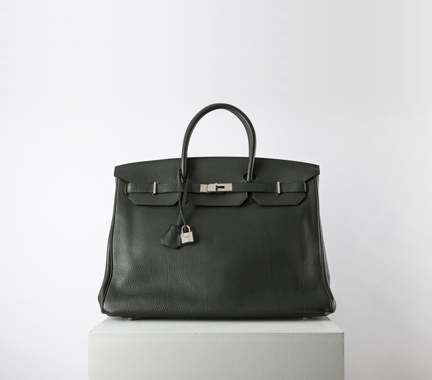 in pelle togo color verde scuro, dettagli in palladio, con sacchetto (lievi difetti).