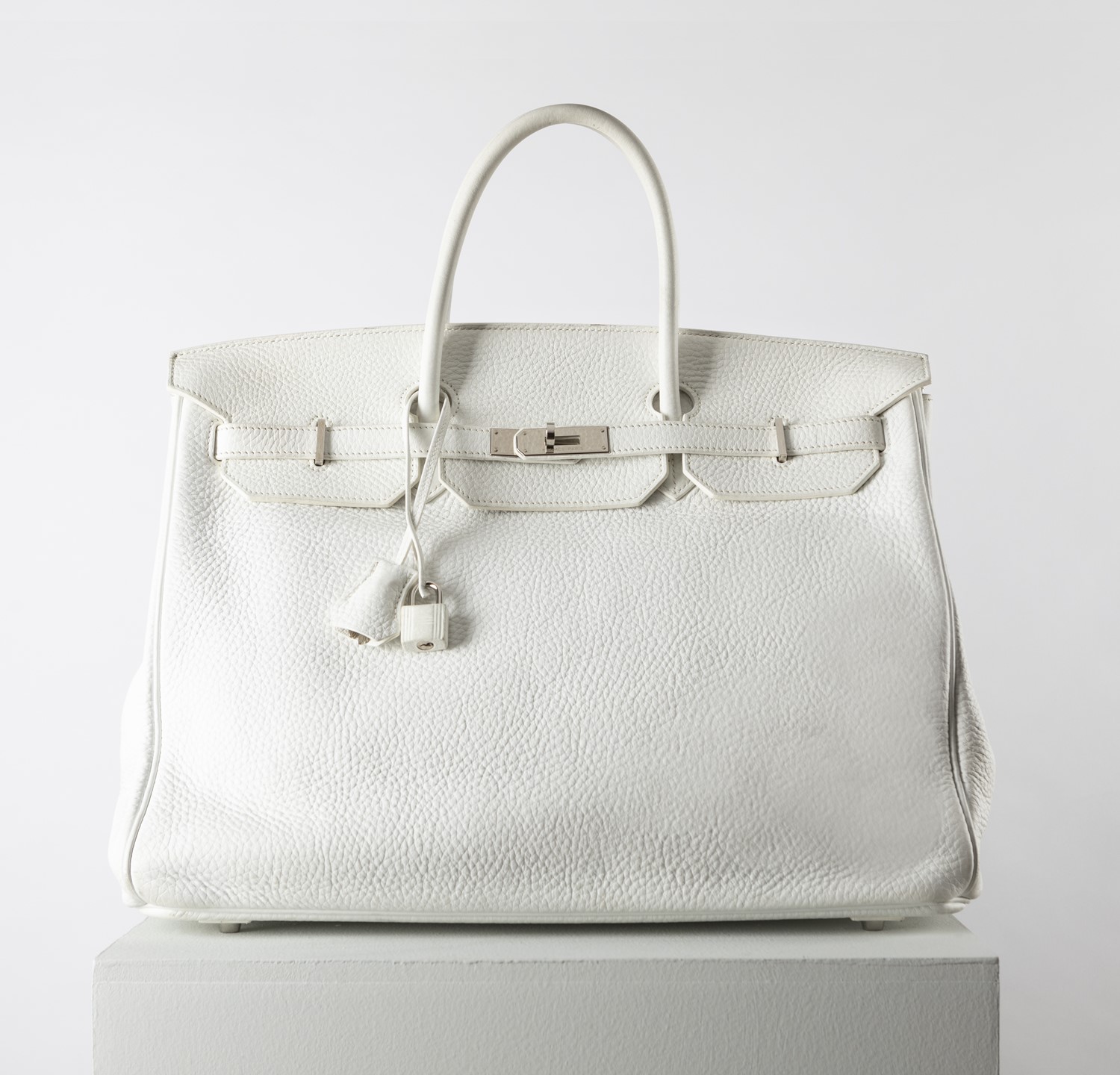 in pelle togo color bianco, dettagli in palladio, con sacchetto (difetti).