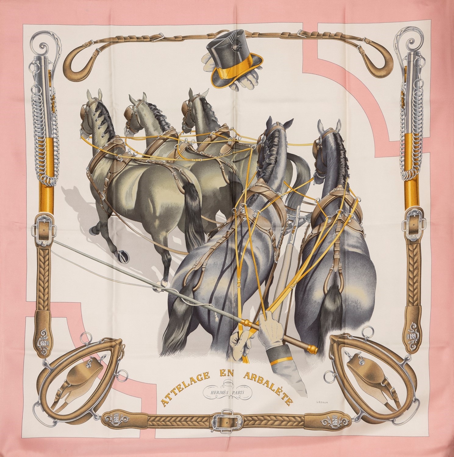 in seta su fondo color panna, bordo color rosa, Philippe Ledoux, raro (difetti).