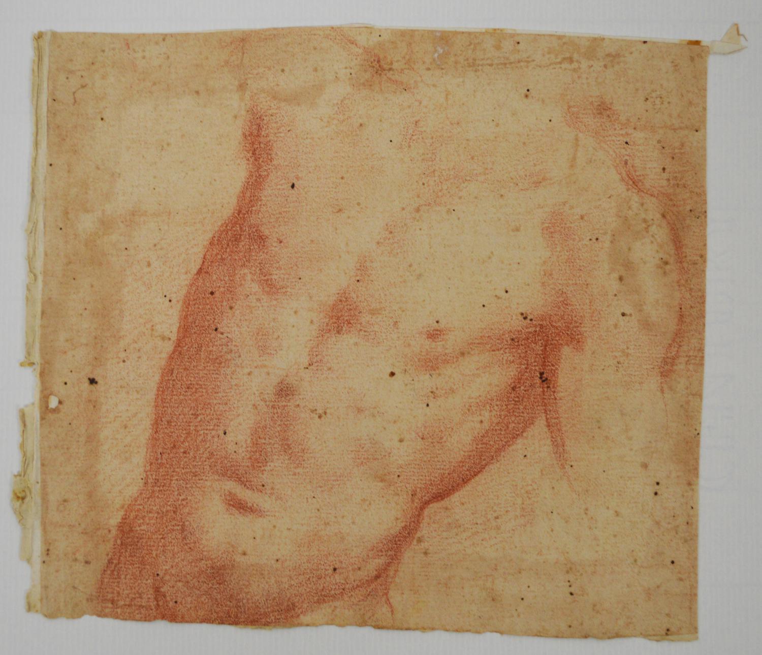 Scuola Toscana del XVII secolo STUDIO ANATOMICO. BUSTO MASCHILE sanguigna su...