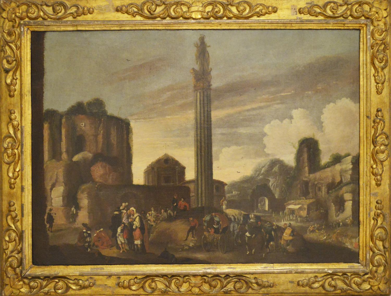 Scuola italiana della fine del XVII secolo CAPRICCIO olio su tela, cm 80x120