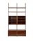 Bookcase with two spans model "E22" with drawers in the lower part, showcase in the central part and open shelves in the upper part. Produced by Tecno, Varedo, 1957. Metal, brass, glass and wood veneered and edged with Indian rosewood. Brand of production. (143x280x49 cm.) (slight defects and lack of keys)