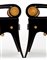Coppia di poltroncine con struttura in legno tinto nero, seduta imbottita rivestita con tessutto Ratti, inserti torniti in legno chiaro. Probabile produzione Stol, Kamnik, anni '80. Recante etichetta "Ratti" sotto la base. (cm 63x92x66)