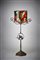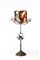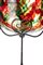 Boiler vase in transparent, colorless, green, blue and red blown glass with light balloton processing and top rim in hot-applied black glass. Wrought iron frame with base in embossed iron foil with spiral-shaped motif, twisted shaft, central apparition with Saint Mark's lion inscribed in the round, summit termination in twisted racemes. Execution by Vetreria Artistica Barovier, Venice / Murano, 1924ca. (h glass cm 22; d glass cm 24; total h 80 cm) (slight iron defects)