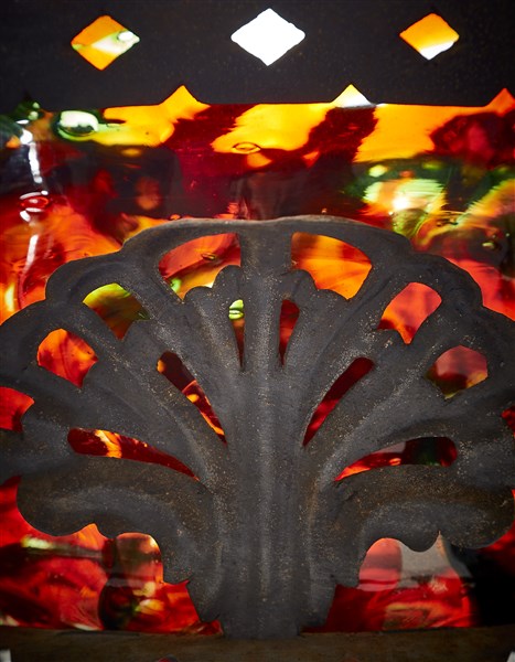 Umberto Bellotto "Connubio di ferro e vetro"Cesendello in ferro battuto e lamin