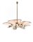 Lampada a sospensione. Milano, anni '50. Ottone, metallo verniciato bianco e cinque petali in cristallo rosambrato molato. (h cm 80; d cm 82)