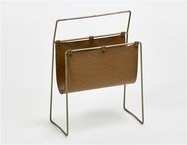 Portariviste in tondino di acciaio e cuoio. Italia, anni '50. (cm 37x44x20,5) (