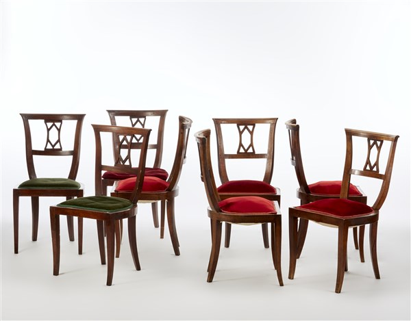 Gigiotti Zanini Gruppo di otto sedie in stile Novecento. Milano, anni '30. Legno