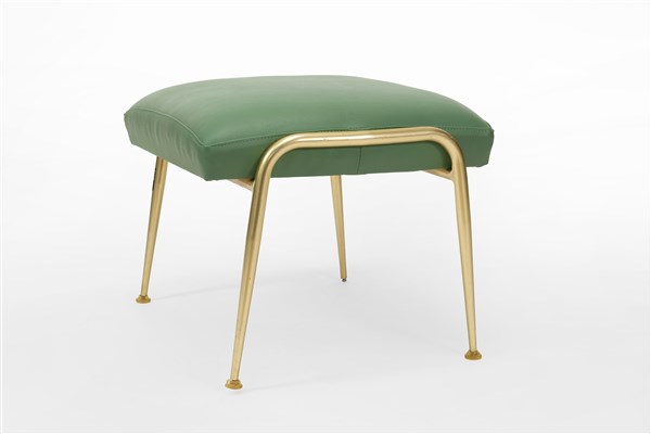 * Stool. Produced by Officine Valsecchi, Milan, 1957. Legs in brass-plated aluminum, wooden structure and seat in foam rubber covered in green skai. (55x38x47 cm.) (slight defects, restorations and losses)