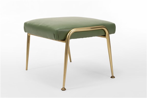 * Stool. Produced by Officine Valsecchi, Milan, 1957. Legs in brass-plated aluminum, wooden structure and seat in foam rubber covered in green skai. (55x38x47 cm.) (slight defects, restorations and losses)