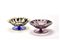 Lotto di due alzatine in vetro rispettivamente blu/pagliesco e ametista, dipint