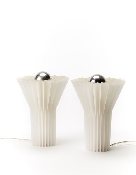 Coppia di lampade da tavolo modello "Bouquet". Produzione CIni & Nils, Milano, 2006. Marcate sotto la base. (h cm 22,5; d cm 18)