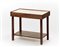 Tavolino in legno massello con piano in formica rosa, piano inferiore in legno e due cassettini sottopiano. Italia, anni '50. (cm 70x57x40) (lievi difetti)