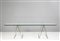 Table. Bregnano, 1980s. Glass top and trestle legs in brushed silver metal. (249x73x110 cm.) (defects)