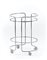 Carrello/comodino tondo a due ripiani. Bregnano, anni '80. Struttura in metallo cromato e piani in cristallo. (h cm 66; d cm 47) (lievi difetti)