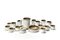 Lotto composto da una caraffa, sei boccali, otto bicchieri, un piatto, una ciotola e una zuccheriera. Arcore, anni '80. Terracotta smaltata nei toni del marrone, azzurro, bianco e nero. Marcati sotto la base. (lievi difetti)