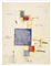 Studio del decoro geometrico a mosaico di smalti policromi per l'insegna di una boutique in Piazza San Marco, Venezia 1950/51. Scala 1:1. Matita e pastelli colorati blu, nero, giallo, verde e rosso su carta filigranata "Electa Charta Italica". (cm 28,4x22,3) (lievi difetti)