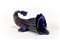 Archimede Seguso Grande cornucopia in vetro soffiato blu a profonde costolature,