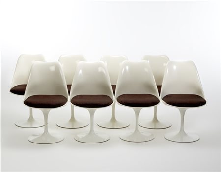 Eero Saarinen (Attribuito)Gruppo di otto sedie modello "Tulip". probabile produ