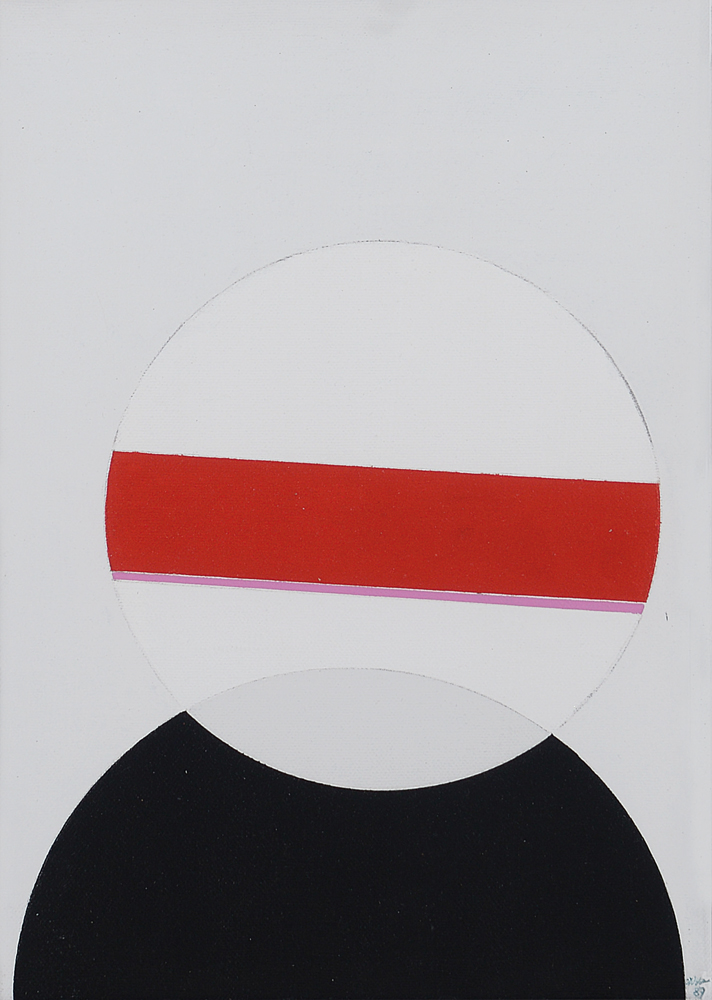 EUGENIO CARMI Genova 17/02/1920 ME 22, 1987 acrilici su tela cm. 35x25, firma, titolo e anno al retro, dichiarazione d'autenticità dell'artista su 2 foto e su polaroid.