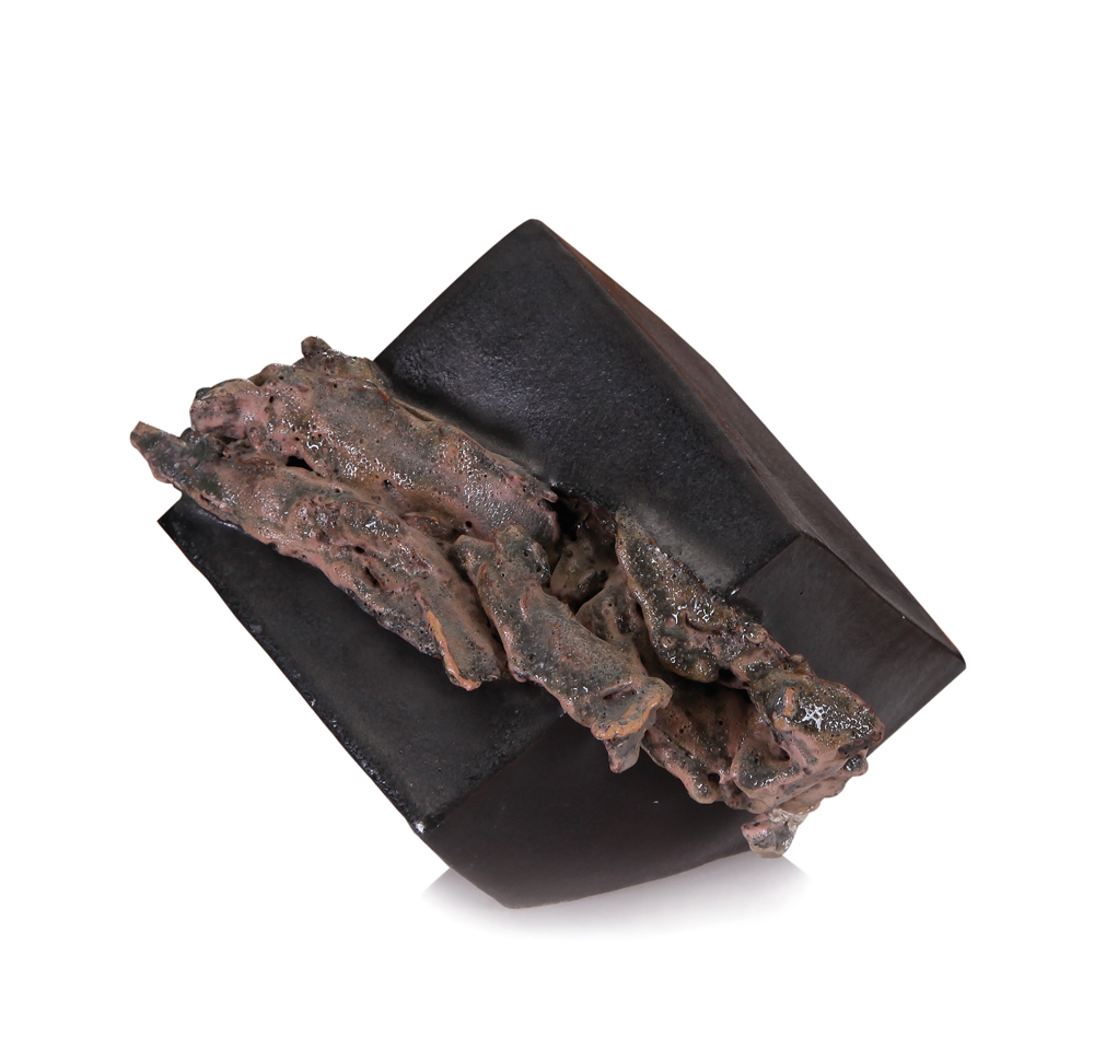 CARLO ZAULI Faenza 1926 - 2002 Cubo esploso, 1973 scultura in gres cotto a 1200° con smalti nero, "Bianco Zauli" e policromi cm. 30x20x16; pezzo unico, firma in basso, opera registrata presso il Museo Carlo Zauli come da certificazione allagata con misure errate.