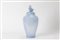 in vetro azzurro, con coperchio e presa guisa di drago.