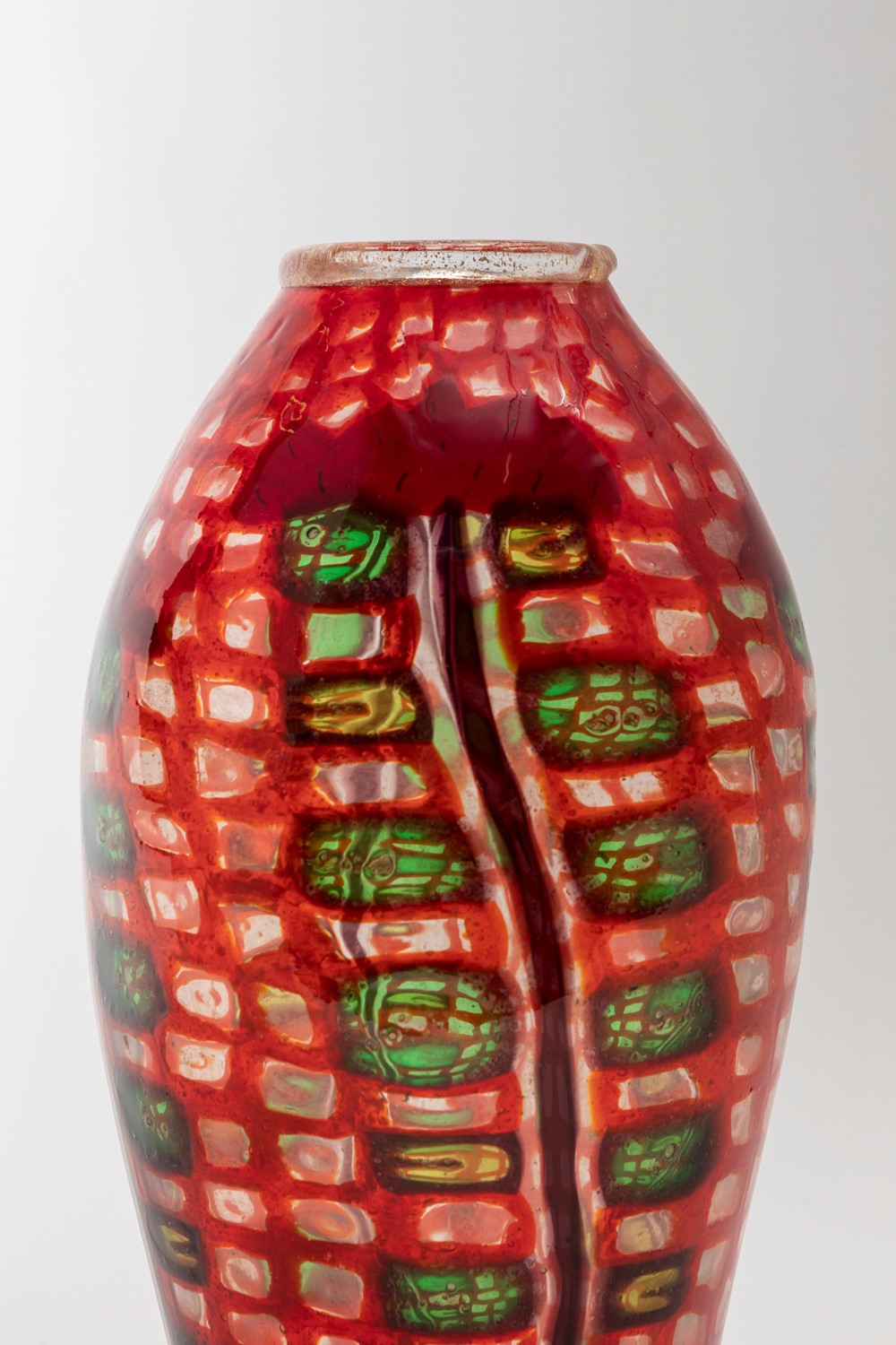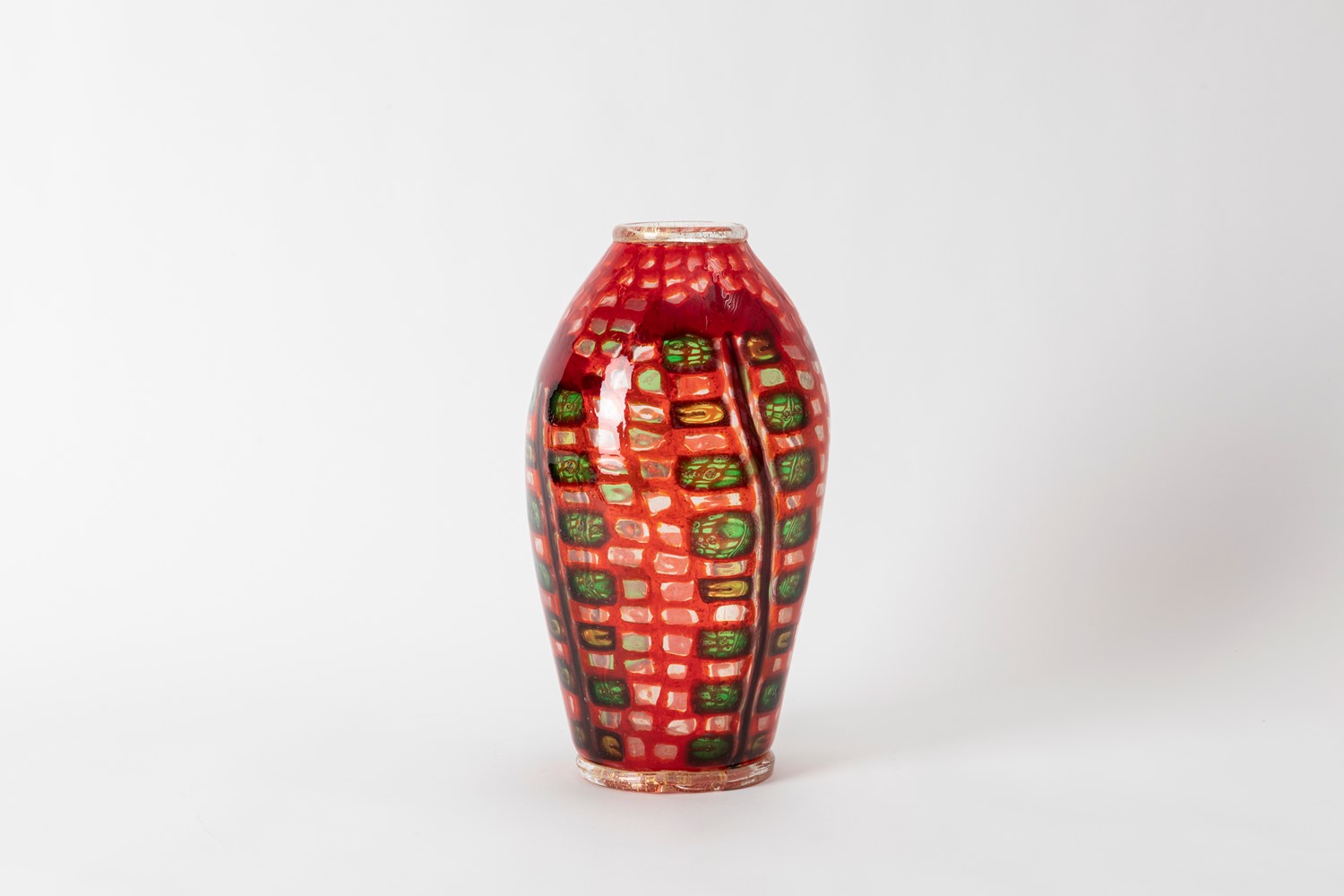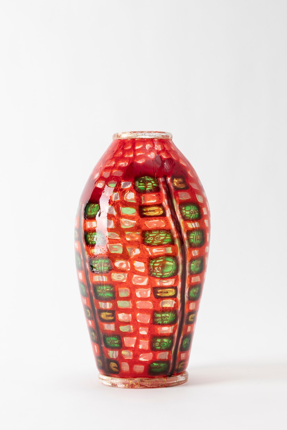in vetro soffiato a murrine con decorazione floreale.