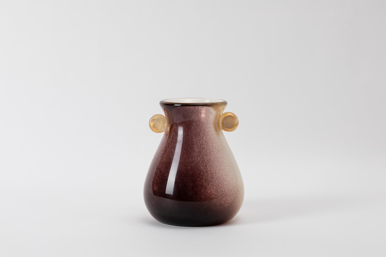 Vetro soffiato con inclusioni di polveri di vetro e foglia d’oro.