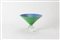corpo di forma conica in vetro incamiciato turchese e zaffiro poggiante su sfera di cristallo incolore