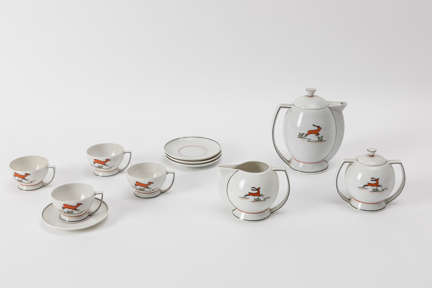 in porcellana composto da teiera, lattiera , zuccheriera, quattro tazzine e quattro piattini.