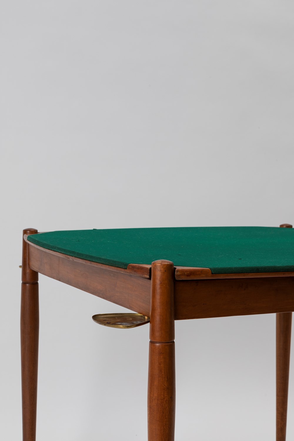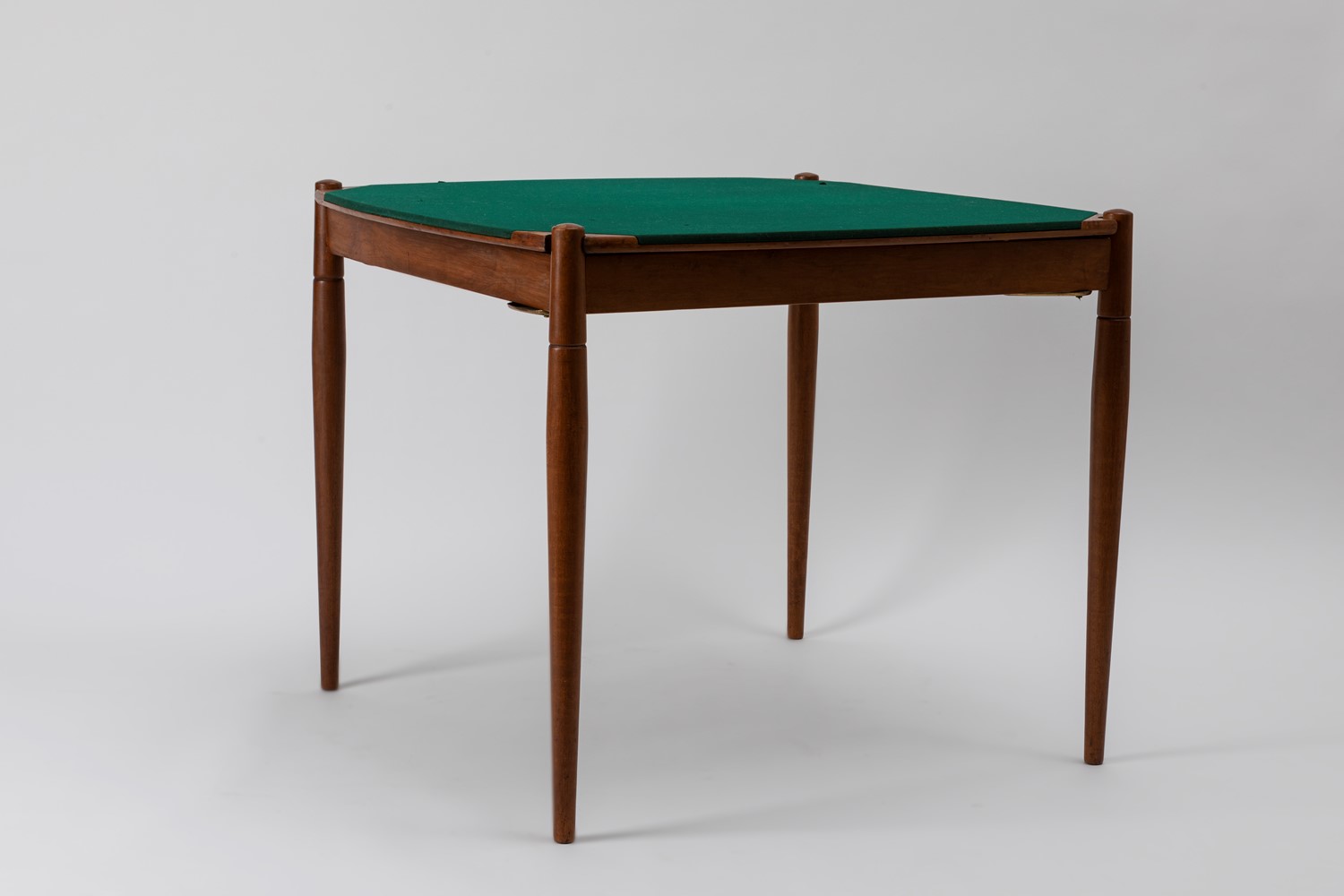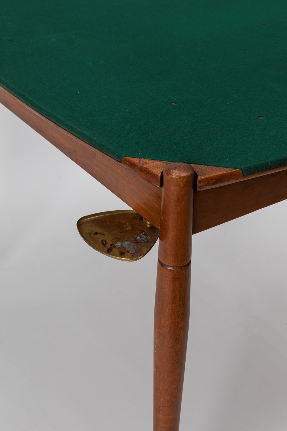 in legno di faggio, piano reversibile in panno e legno di teak con posacenere di ottone.