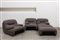 modulare in tessuto con scocca in plastica con pouf. Componibile a piacere con braccioli removibili.