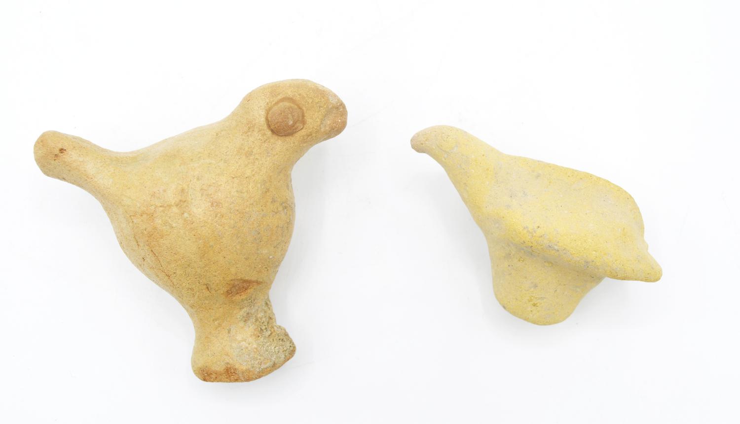 Due fischietti modellati come un piccolo volatile stilizzato in posizione stante. (2)