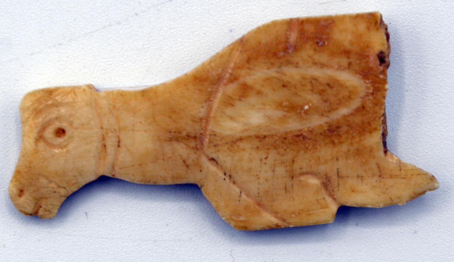 Elemento pertinente probabilmente ad un cofanetto e raffigurante un bovino accosciato.