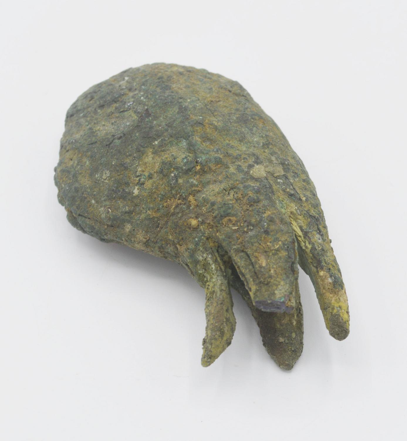 Testa di mazza di forma globulare con quattro punte all'attacco triangolari per l'immanicatura.