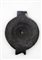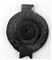 Elemento circolare in avorio, forse decorazione di un mobile o di un cofanetto, con un foro al centro, decorato da linee concentriche e motivo geometrico sul bordo.