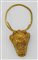 Orecchino in lamina d'oro appartenente al periodo miceneo, realizzato mediante unione di due 'maschere' complementari. La testa e' attraversata da un anello anch'esso in oro. Realizzato in due pezzi saldati assieme. Gancio con estremita' combacianti, decorazione ad incisione; narici del bucranio forate orizzontalmente.