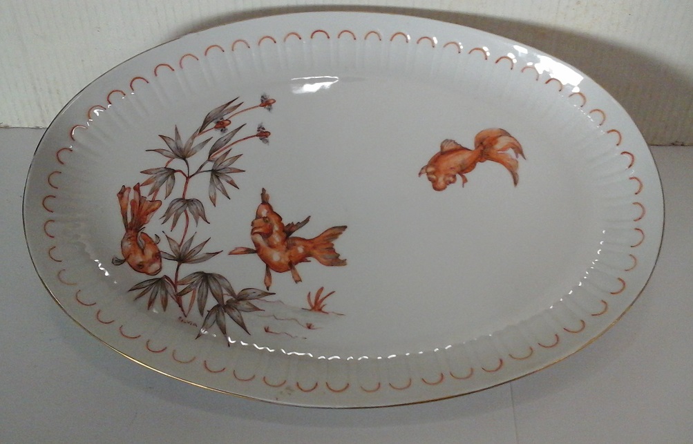 Piatto da pesce in porcellana dipinto a mano cm.38x25,5