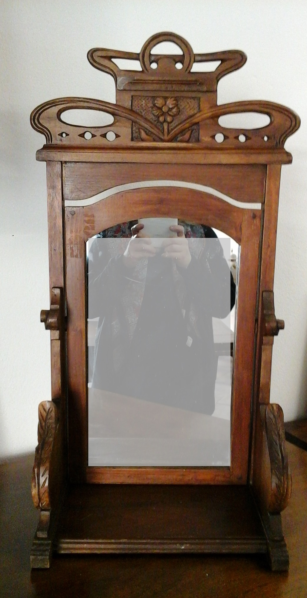 Specchiera da tavolo in noce di epoca Liberty cm.30x35x63