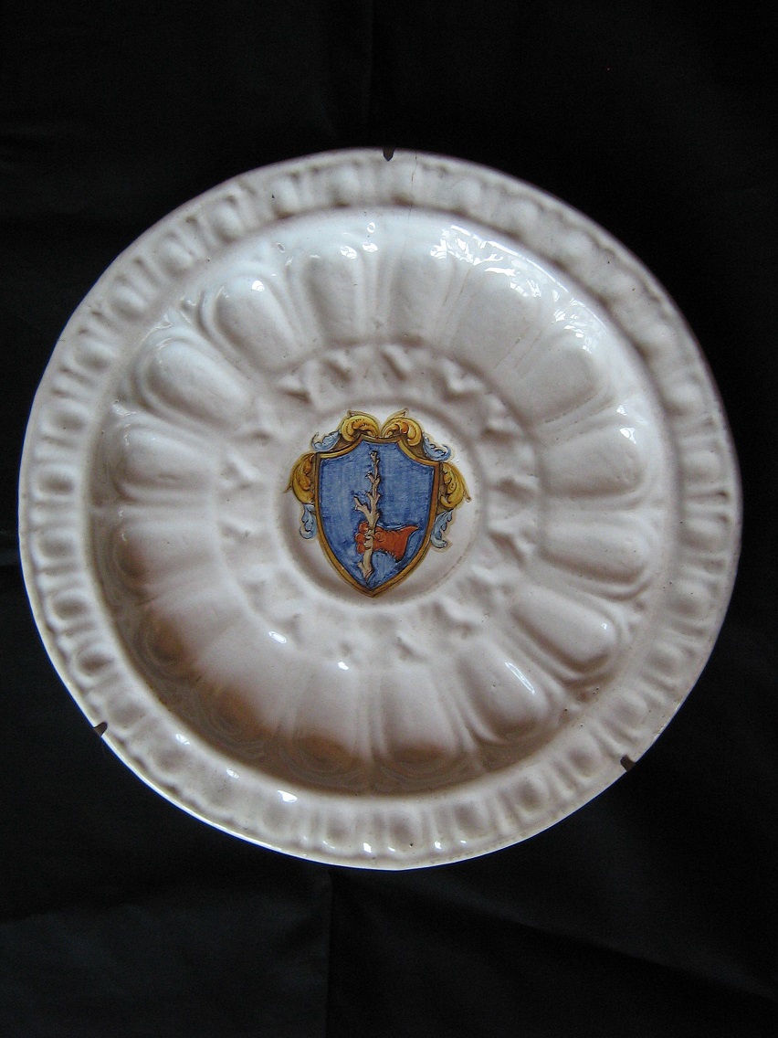 Grande piatto in maiolica con stemma araldico diametro cm.40 - XVIII secolo