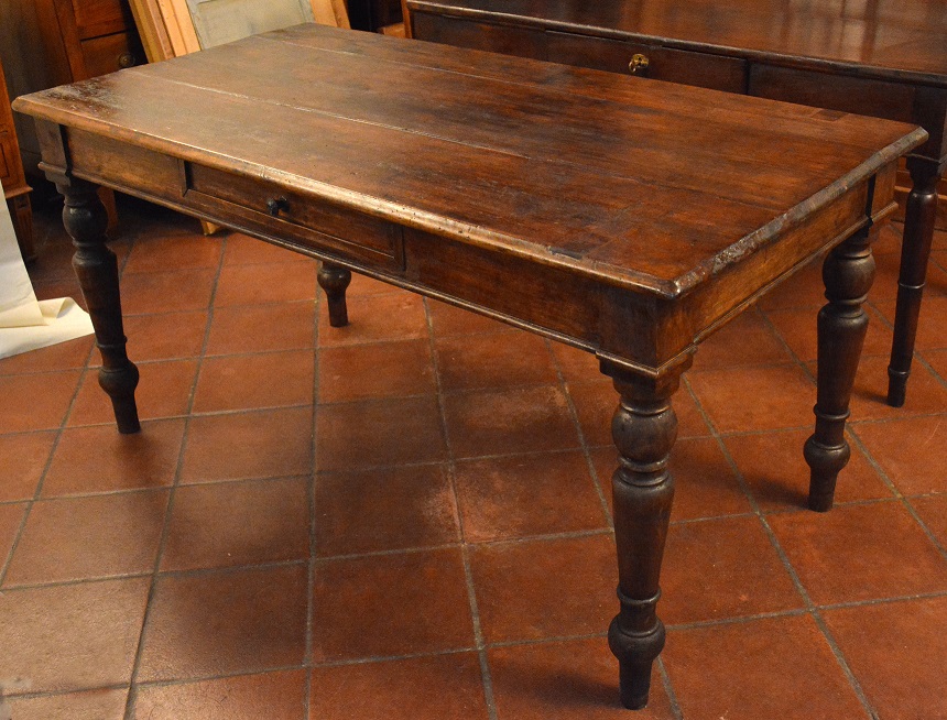 Lotto 53 | Tavolo in pioppo con cassetto e gambe tornite cm.160x85x81, XIX secolo