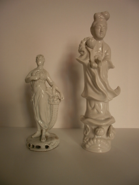 Guanyn (h.cm.20) e Statuina Capodimonte (h.cm.13) in porcellana