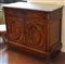 Comò in noce e radica di noce con piano in marmo grigio e piedi a cipolla...