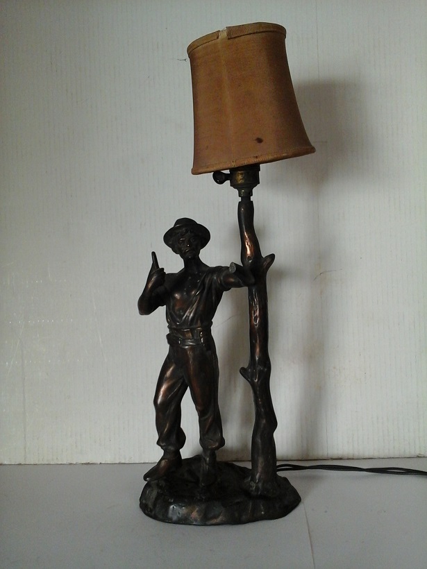 Lampada da tavolo in bronzo brunito raffigurante contadino h.cm.46,5 - difetti e mancanze