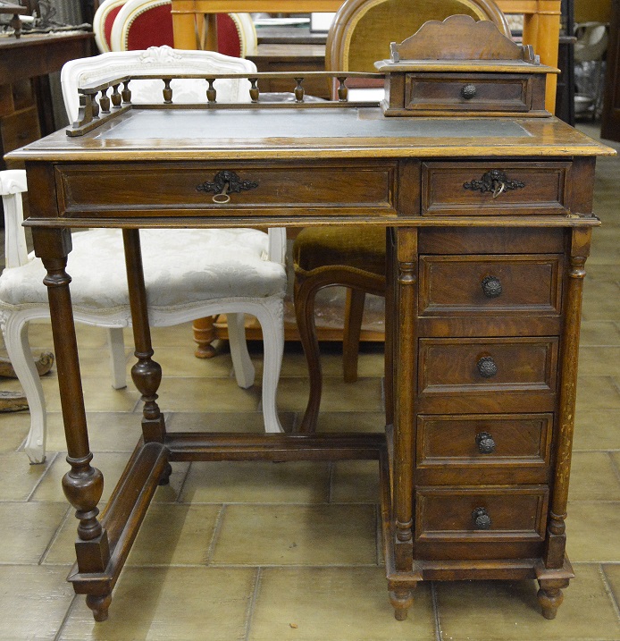 Scrittoio da signora in noce con cassettiera- Piano con inserto in pelle...