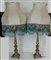 Coppia di lampade in metallo a piedi ferini con paralumi decorati a perline...