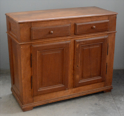 Credenza in noce a due ante e due cassetti con fianchi riquadrati cm.124x50x104 - XIX secolo - difetti