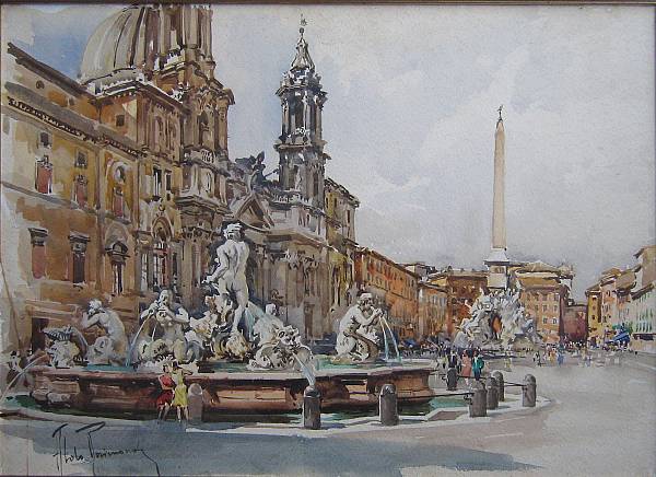 Aldo Raimondi - Piazza romana - Acquerello su carta cm.50x70 - firmato in...