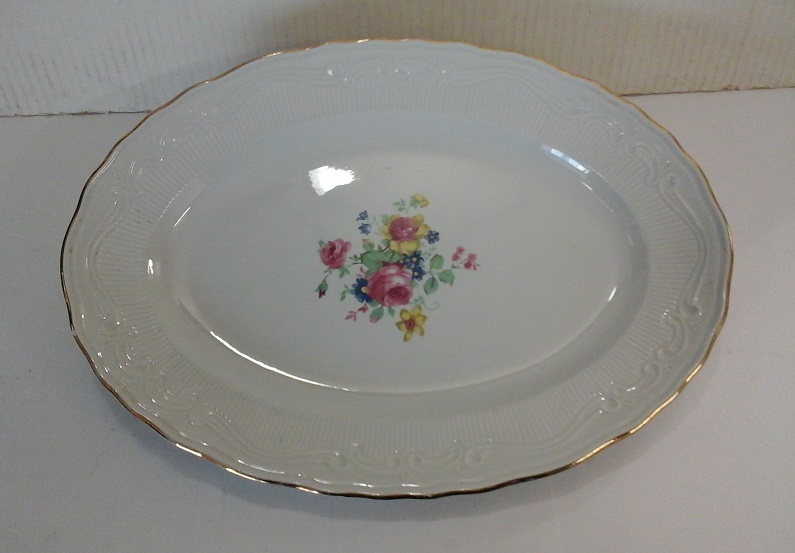 Lotto 162 | Piatto ovale in porcellana decorata con profilo dorato Ceramiche Galvani...