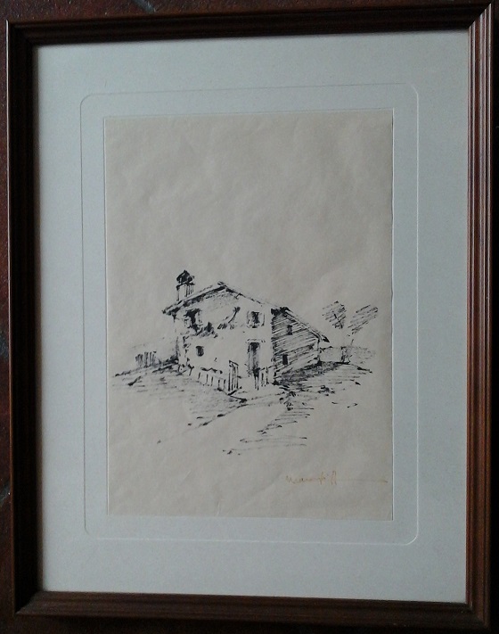 Alessandro Marenghi - Paesaggio con casa - China su carta cm.34x23,5 - firmato in basso a destra